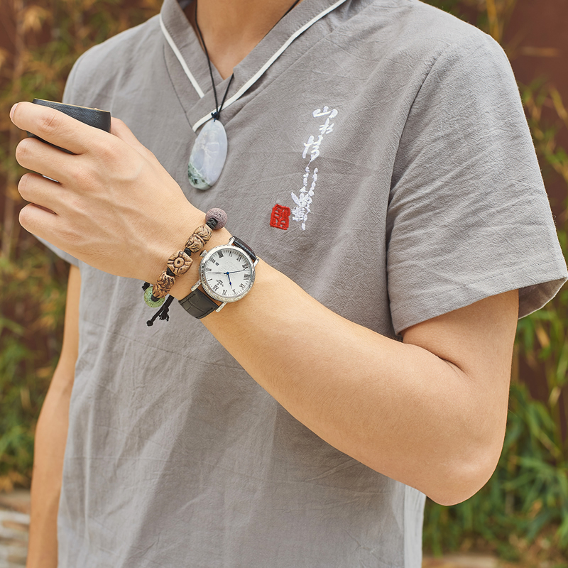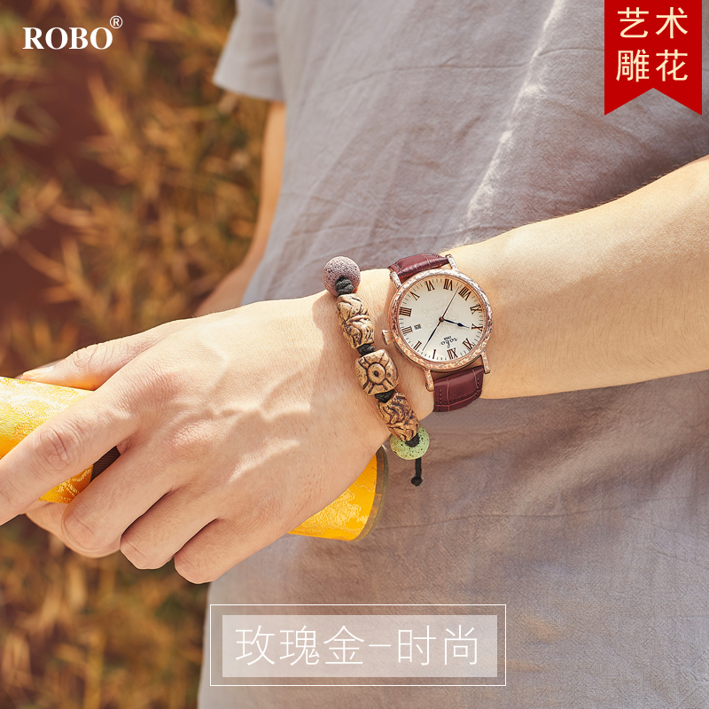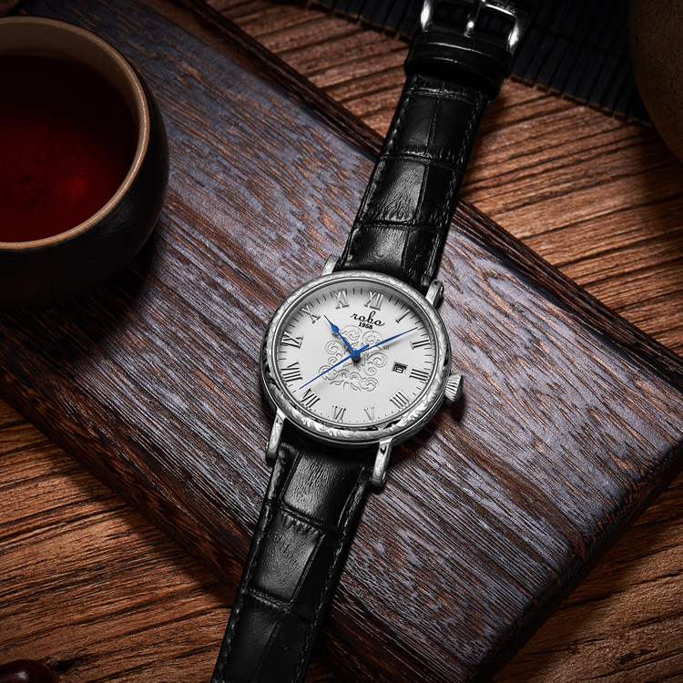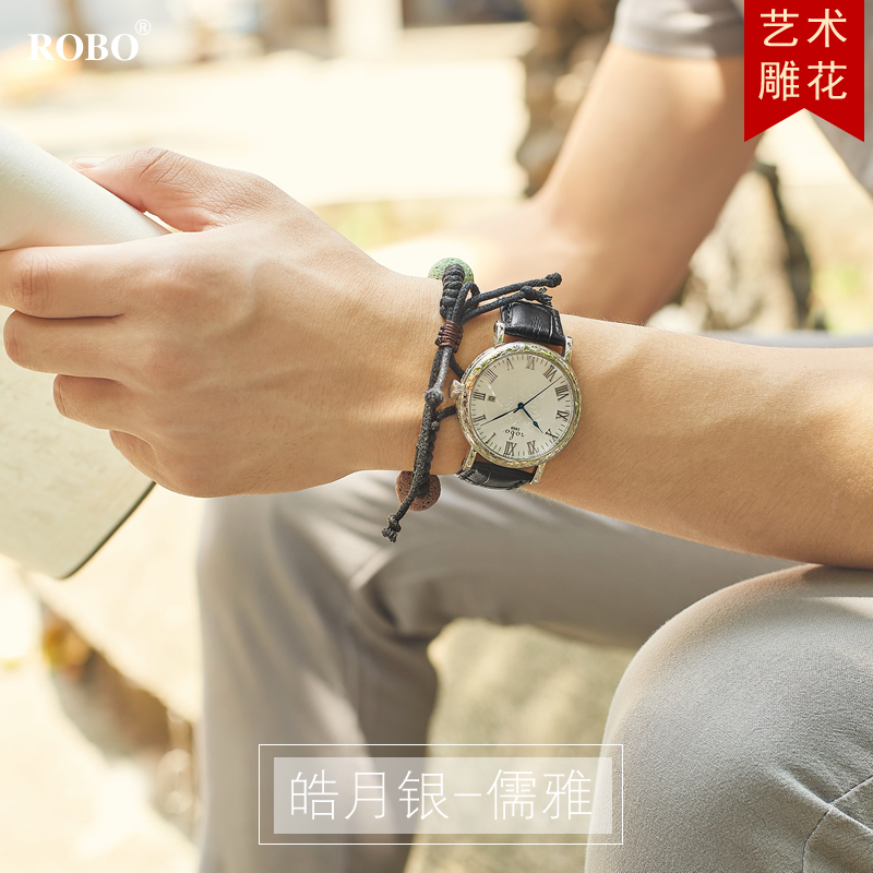 ROBO陆豹手表雅致系列1981文化艺术范儿男士石英手表精钢古典艺术雕花日历防水