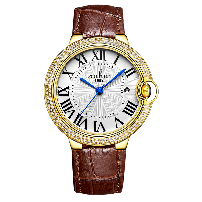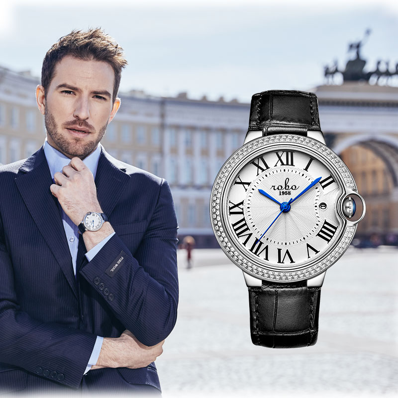 ROBO陆豹手表典雅系列1984A时尚大方经典大气休闲商务百搭镶钻日历防水男士石英手表