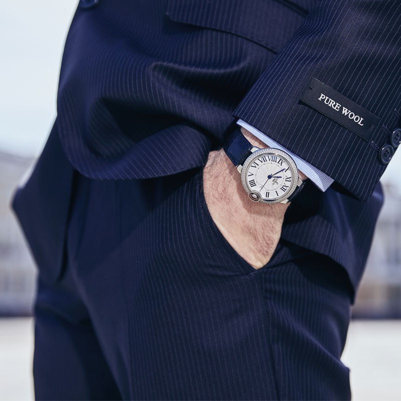 ROBO陆豹手表典雅系列1984A时尚大方经典大气休闲商务百搭镶钻日历防水男士石英手表ROBO陆豹手表典雅系列典雅石英腕表男士腕表皓月银