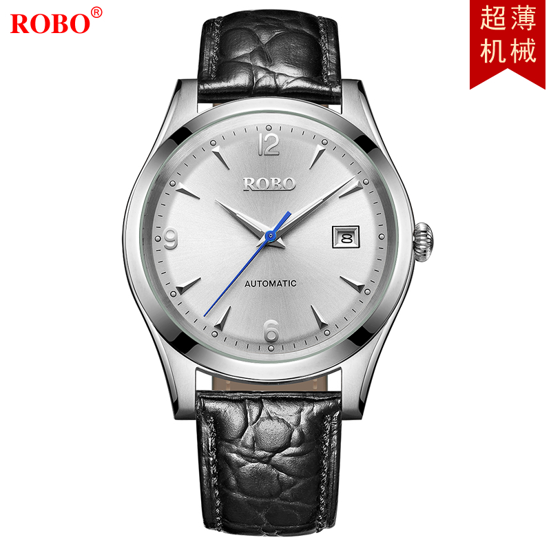ROBO陆豹手表优雅系列超薄机械男士商务手表超薄经典大气时尚简约日历防水夜光ROBO陆豹手表优雅系列超薄全自动机械腕表男士全自动机械腕表经典白