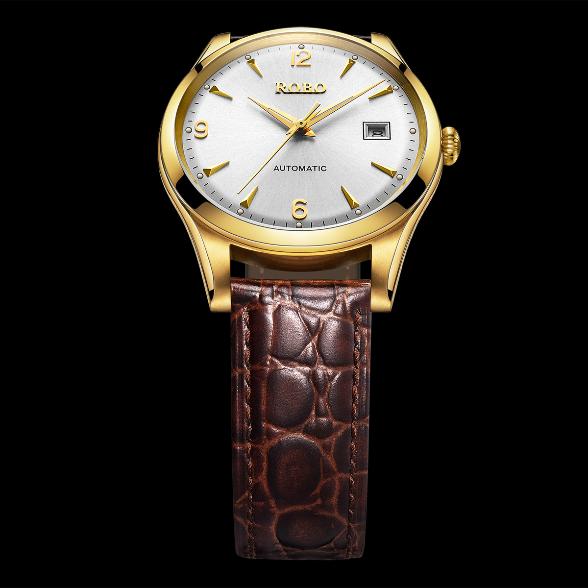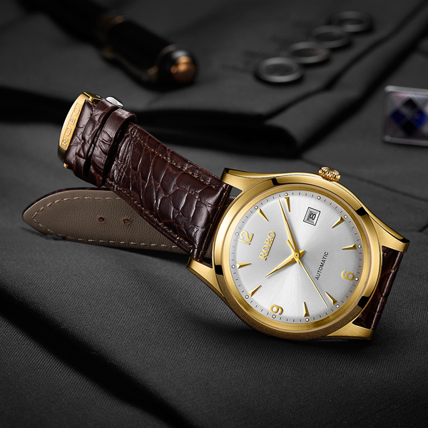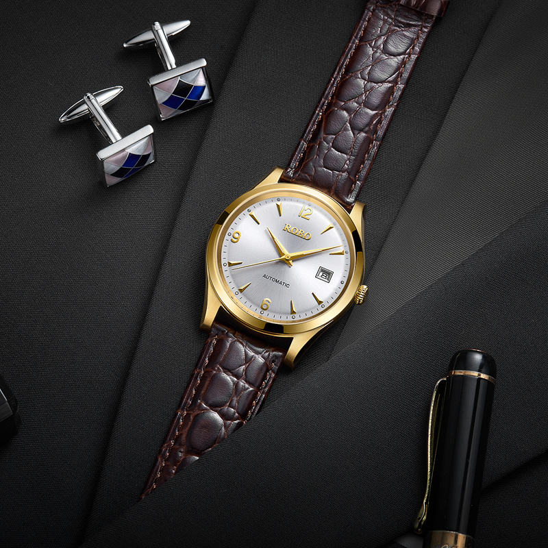 ROBO陆豹手表优雅系列超薄机械男士商务手表超薄经典大气时尚简约日历防水夜光ROBO陆豹手表优雅系列超薄全自动机械腕表男士全自动机械腕表香槟金