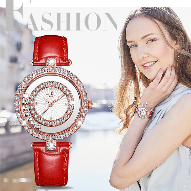 ROBO陆豹手表灵动系列1981快乐钻石女士石英手表镶钻转运钻石可转动